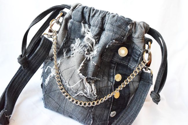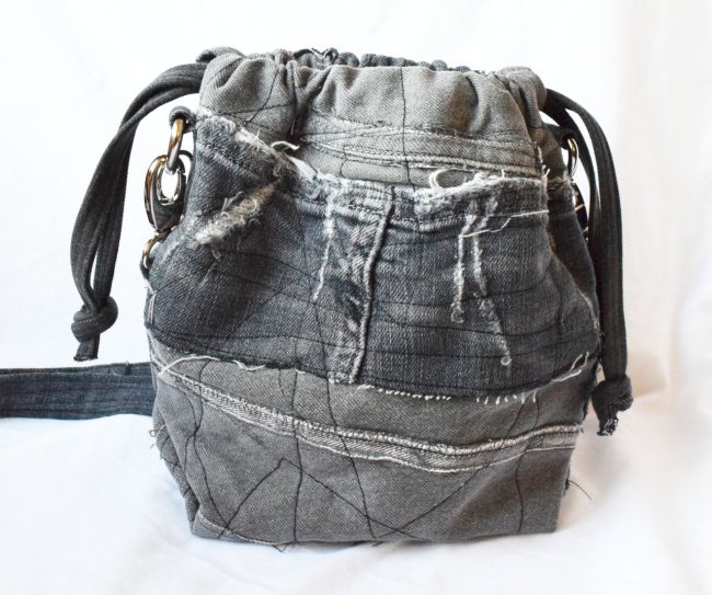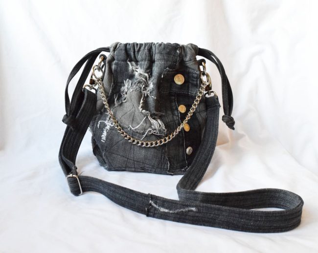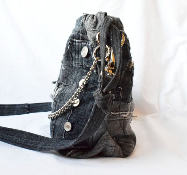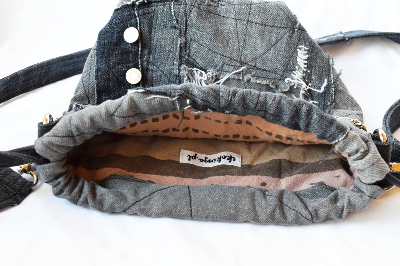 Torebkę uszyłam z poszarpanych spodni grafitowych.